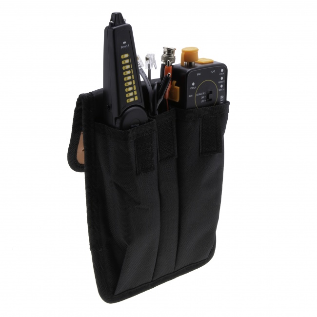 The TDG310K1C Digital Tone and Probe Kit allows tracing and locating of single or bundles cables that are connected to unpowered or active networks such as phone lines, network cables or coax cables. The built-in test functions can verify proper termination of network cables or test for shorts in the single-ended test mode.